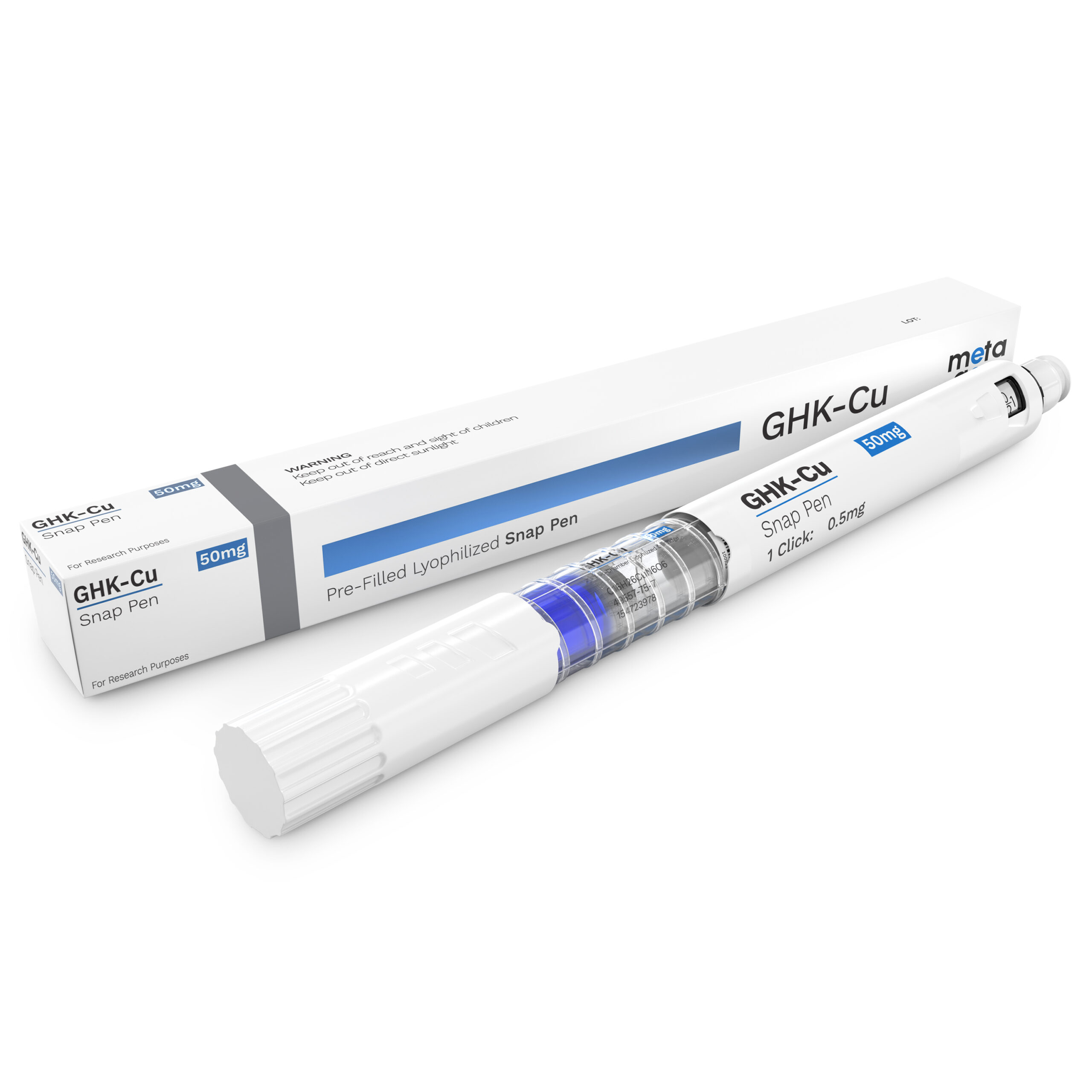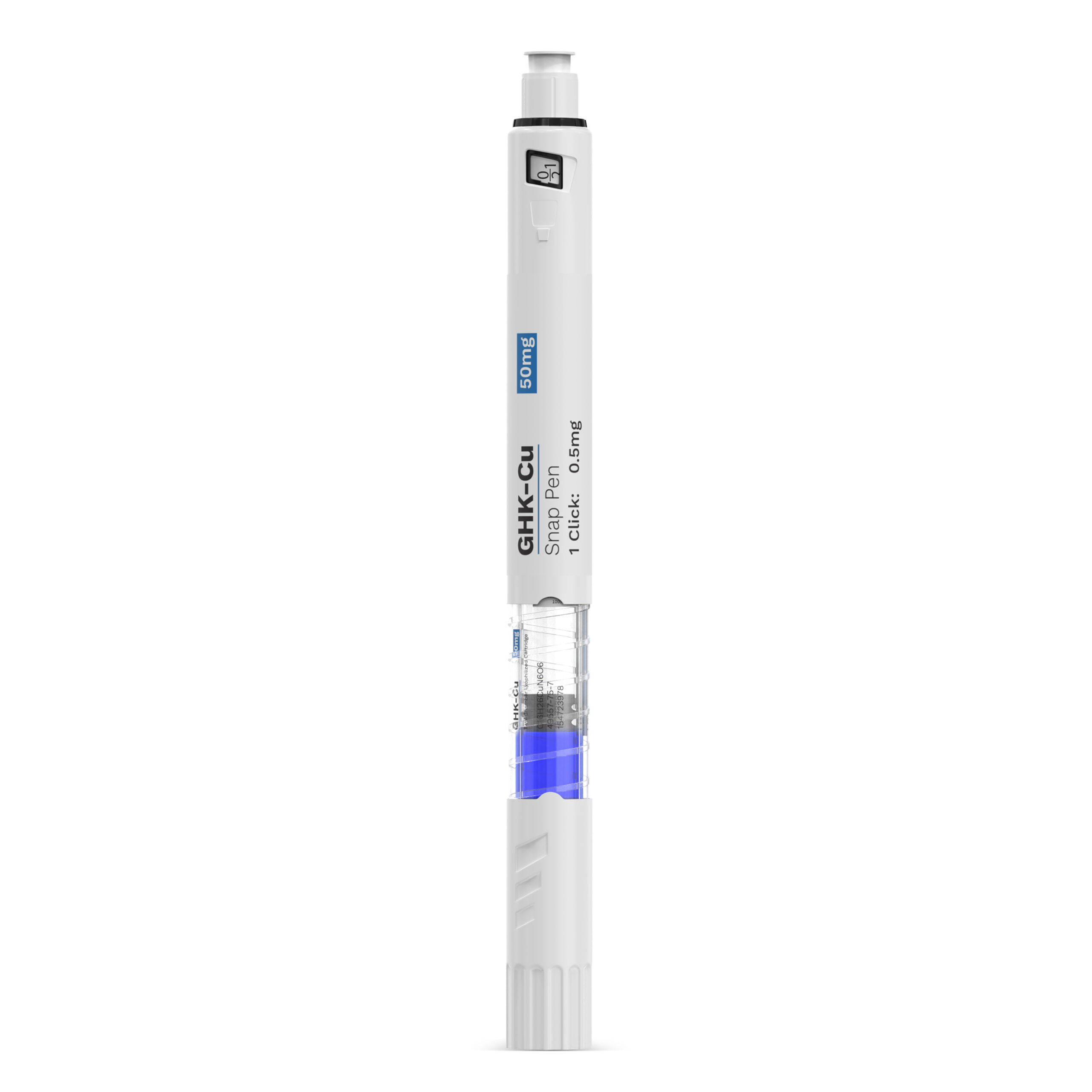- Unit: GHK-Cu in dual-chamber Snap Pen (lyophilized peptide kept separate from bacteriostatic diluent).